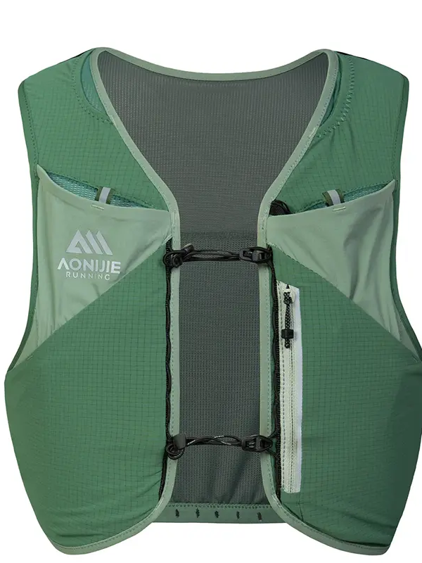 Mochila AONIJIE Mont Blanc para trail running. Ultraligera, diseñada para sentirse casi imperceptible al llevarla. Se ajusta al cuerpo con firmeza, sin movimientos incómodos. Ofrece organización versátil: bolsillos para GPS o pastillas de sal, botella de agua, linterna frontal o geles energéticos, compartimento con cierre para celular y soporte para bastones. Su tejido transpirable favorece la ventilación y mantiene la comodidad. Ideal para correr en montaña, hacer senderismo, ciclismo o actividades al aire libre: ligera, práctica y lista para cualquier ruta.